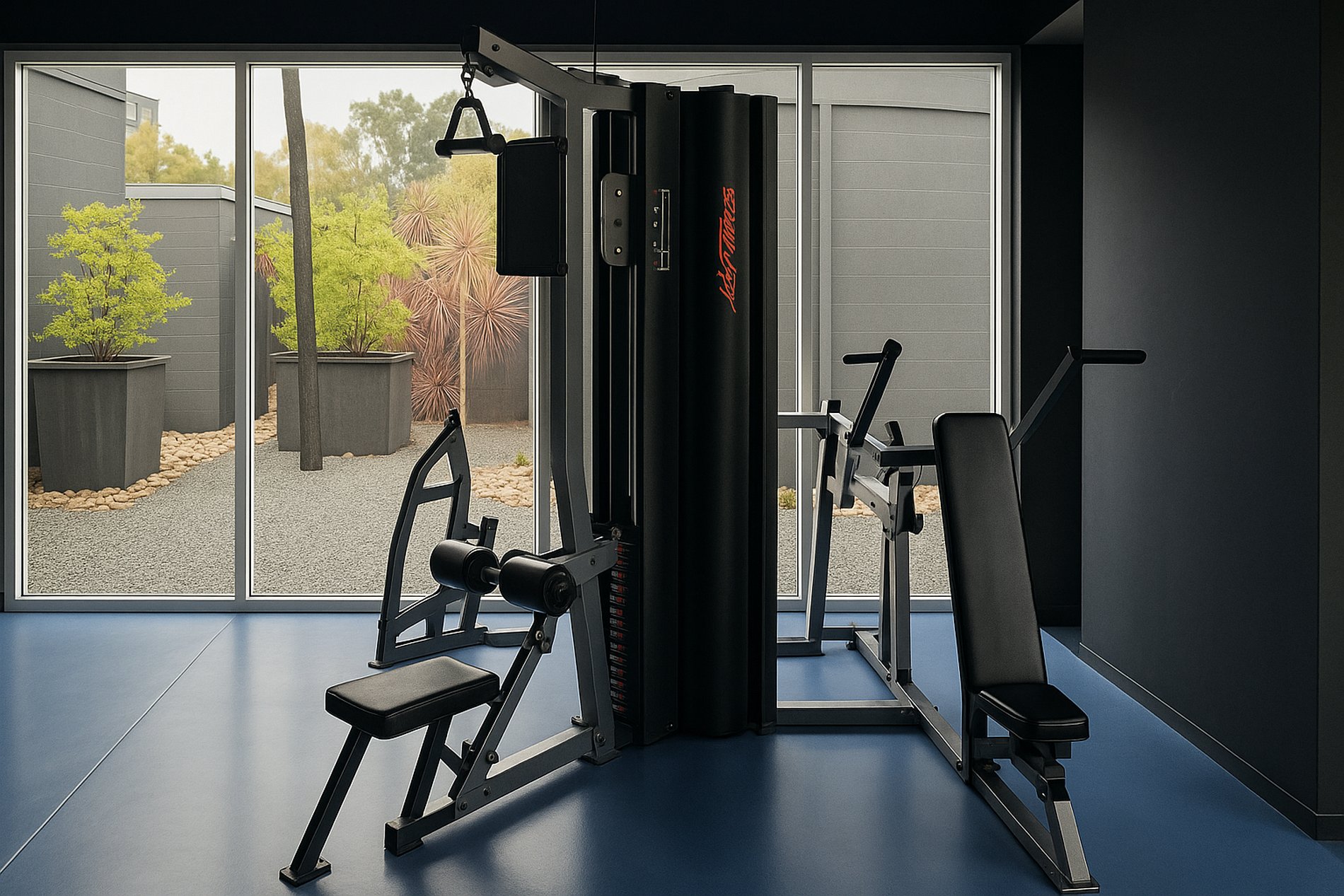 Pool, bike rack, and gym available.