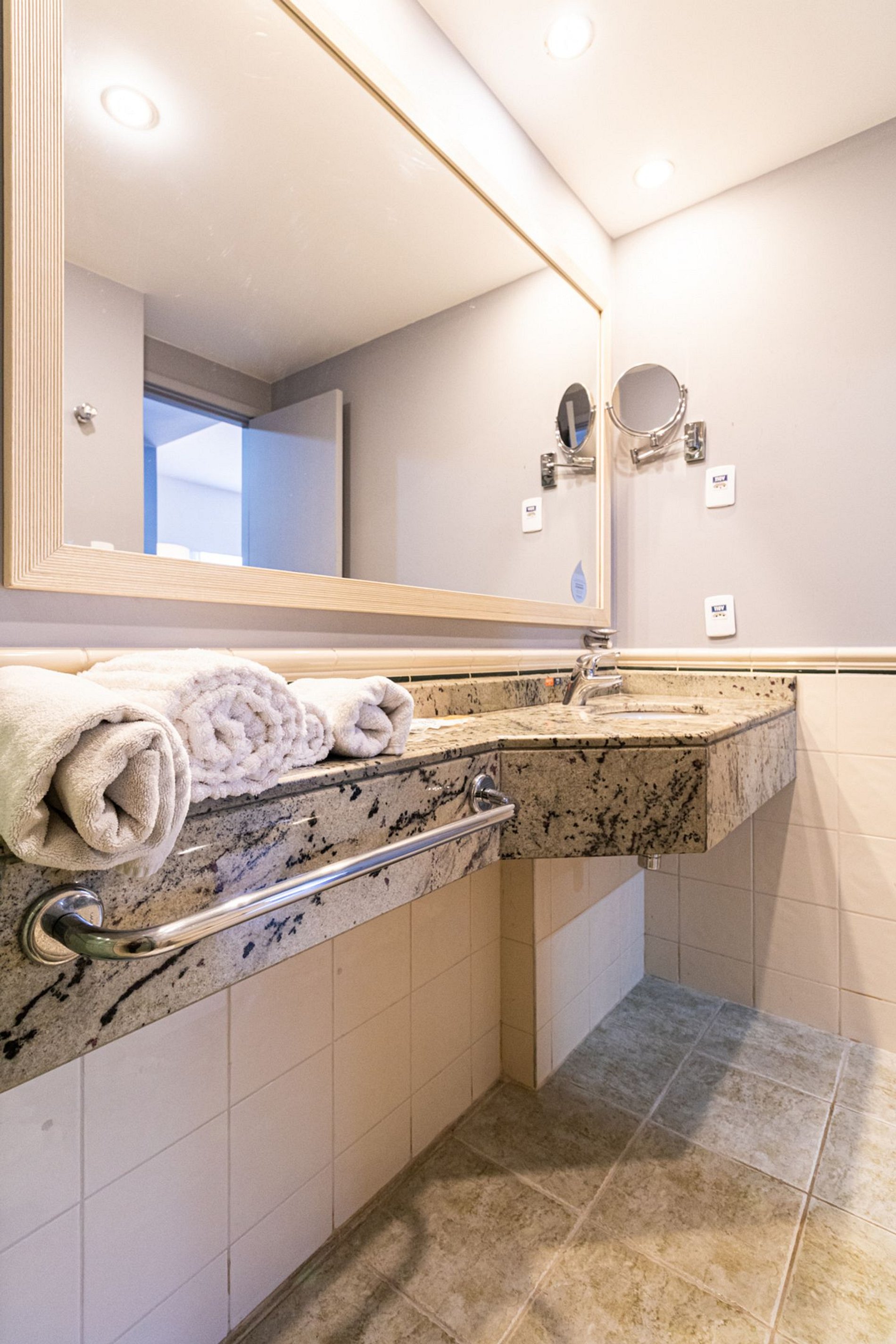 Descartar apenas papel higiênico no vaso. Em caso de entupimento, contate a recepção.