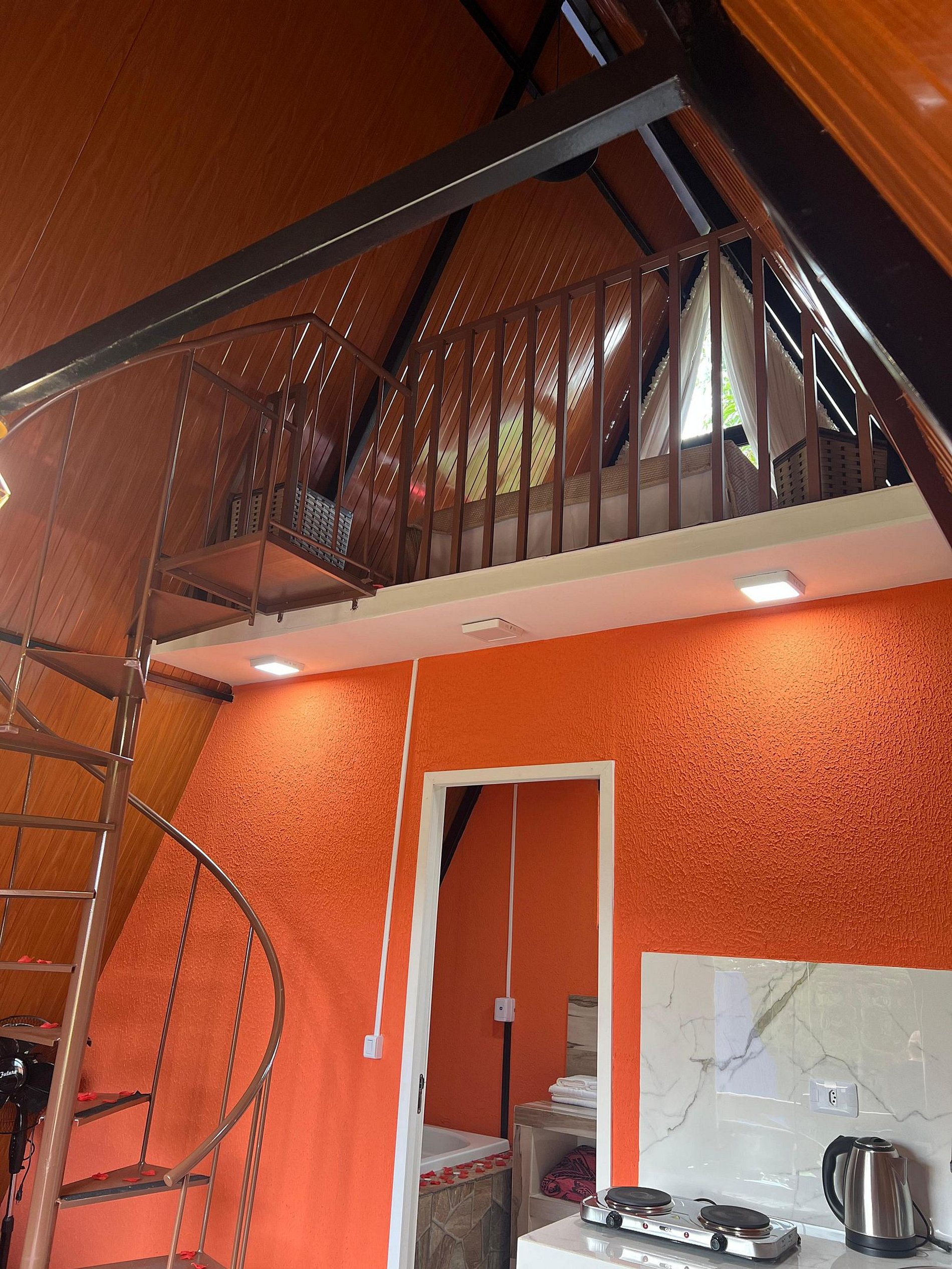 O destaque é a banheira de hidromassagem com cromoterapia, ideal para relaxar após um dia ao ar livre.