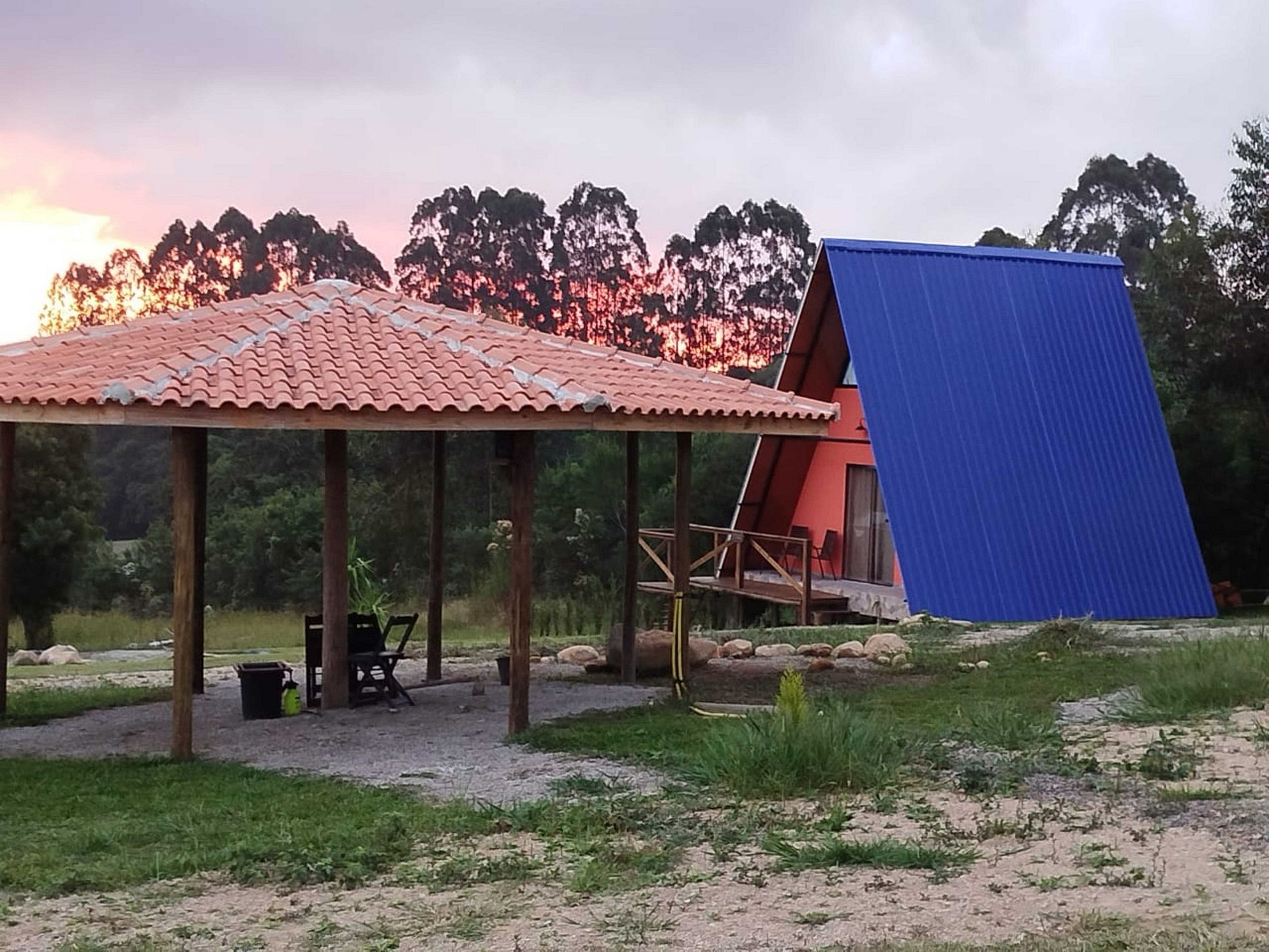 Os hóspedes também podem aproveitar as áreas comuns do sítio, que incluem quiosque com churrasqueira, quadra poliesportiva, espaço para piquenique, deck com rede, local para fogueira e estufa de morangos, criando um ambiente agradável para lazer e convivência. Para maior comodidade, há uma pizzaria a apenas 400 metros, com serviço de entrega no local.