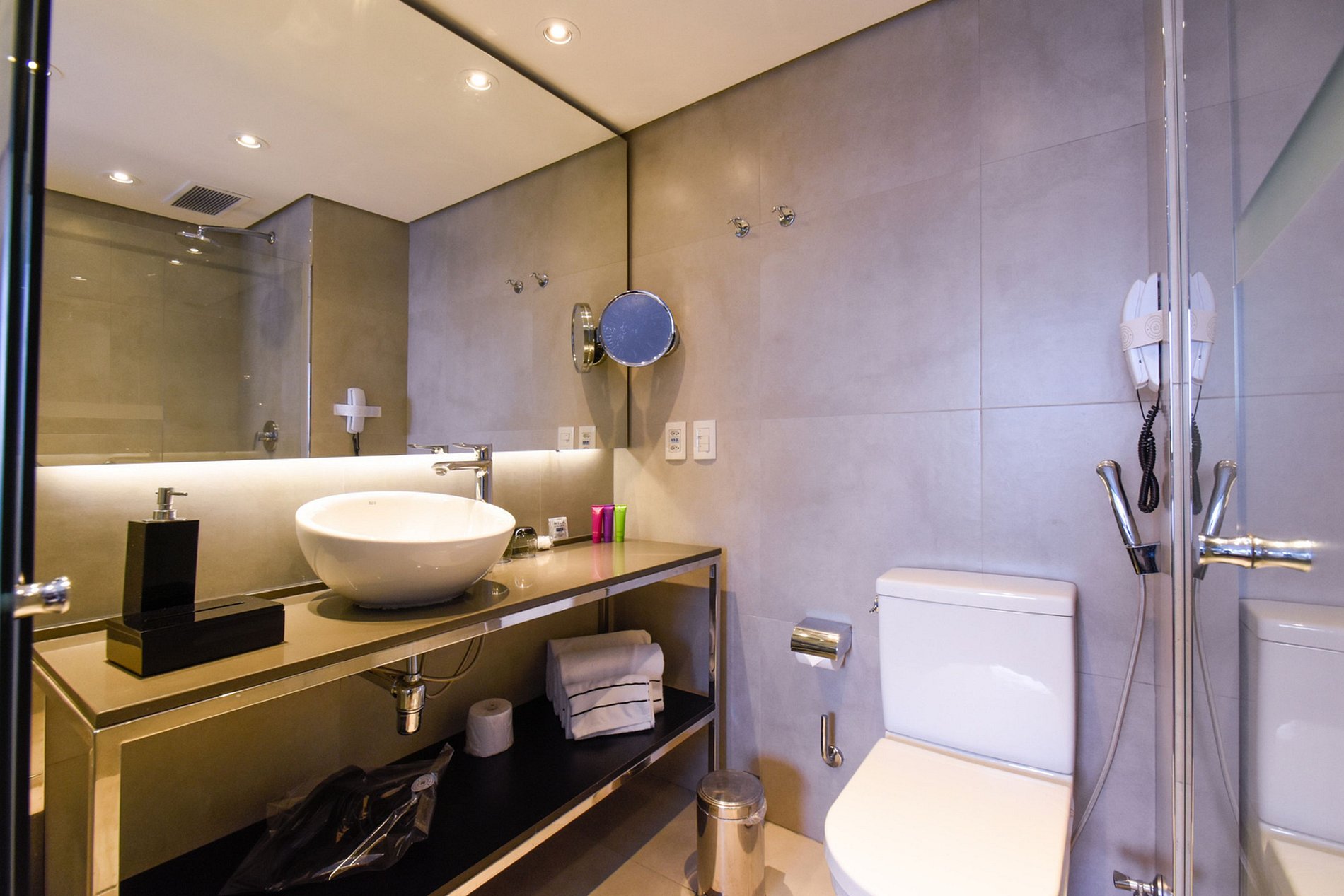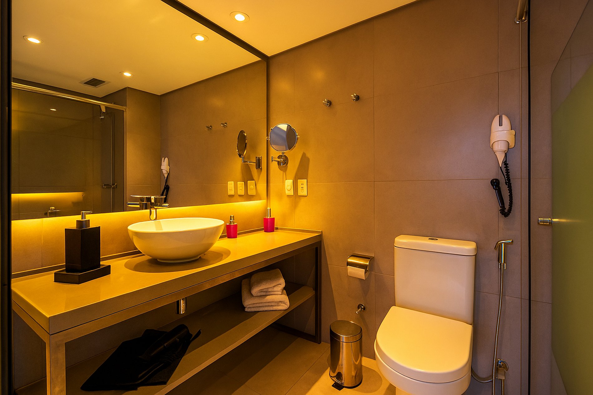 Descartar apenas papel higiênico no vaso. Em caso de entupimento, contate a recepção.