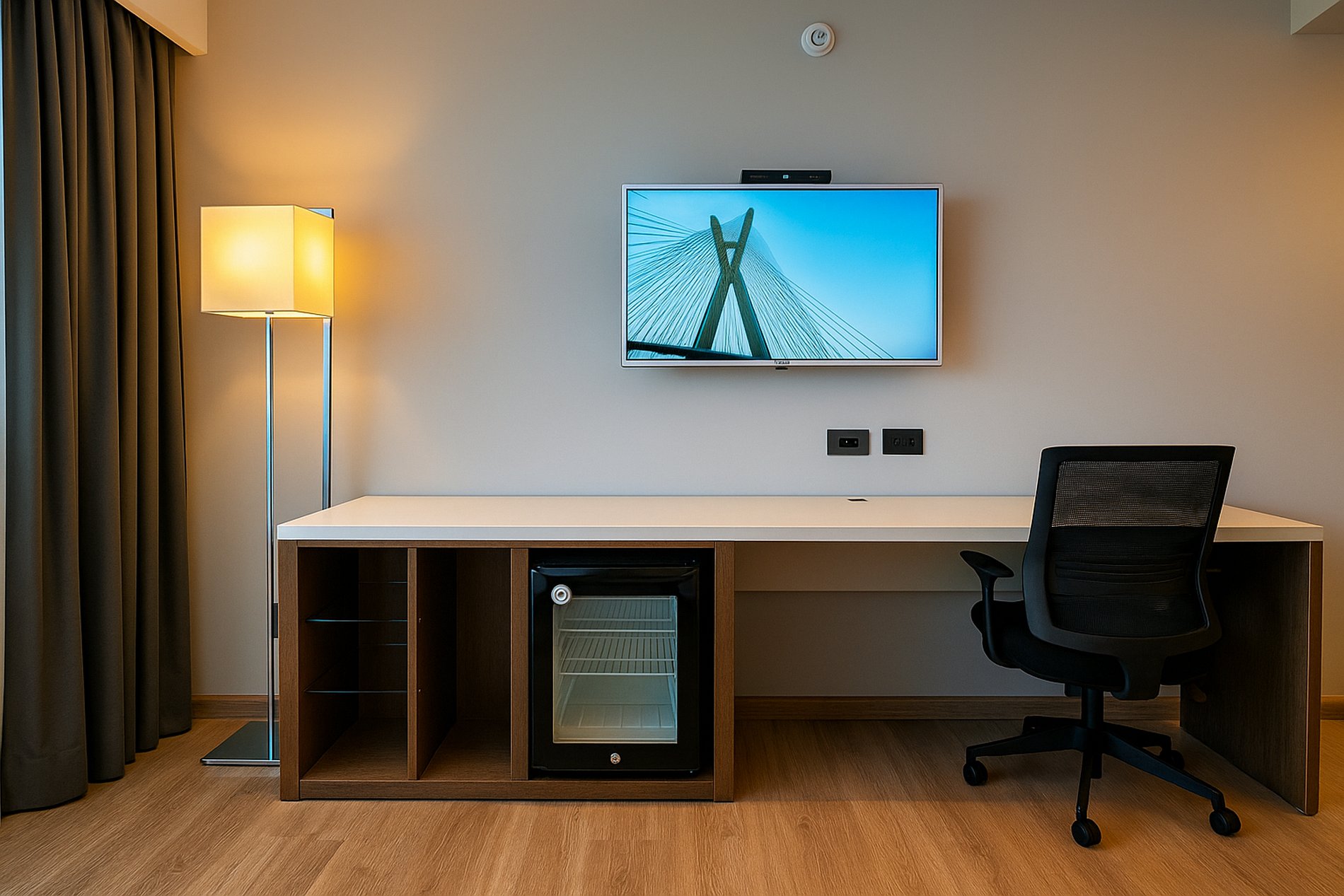 Quarto Climatizado c/ TV e Espaço p/ Home Office: Para seu conforto e produtividade.