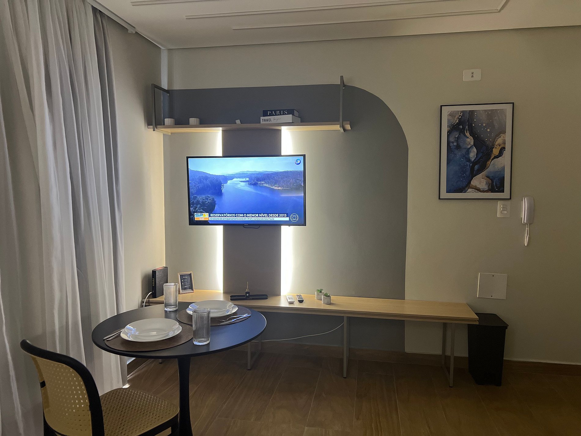 O apartamento conta com quarto aconchegante, cama confortável e banheiro privativo, criando o cenário perfeito para descansar após um dia intenso na cidade seja a trabalho, lazer ou eventos.